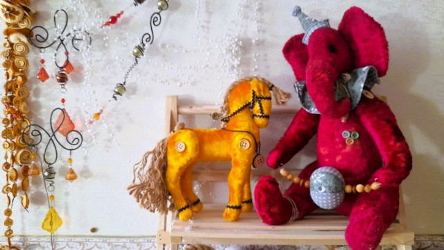 Авторские игрушки из антикварного плюша «Слоник и лошадка»