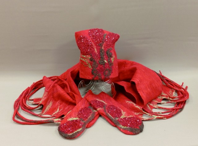 Зимний комплект «Войлочная рябина», валяние из шерсти